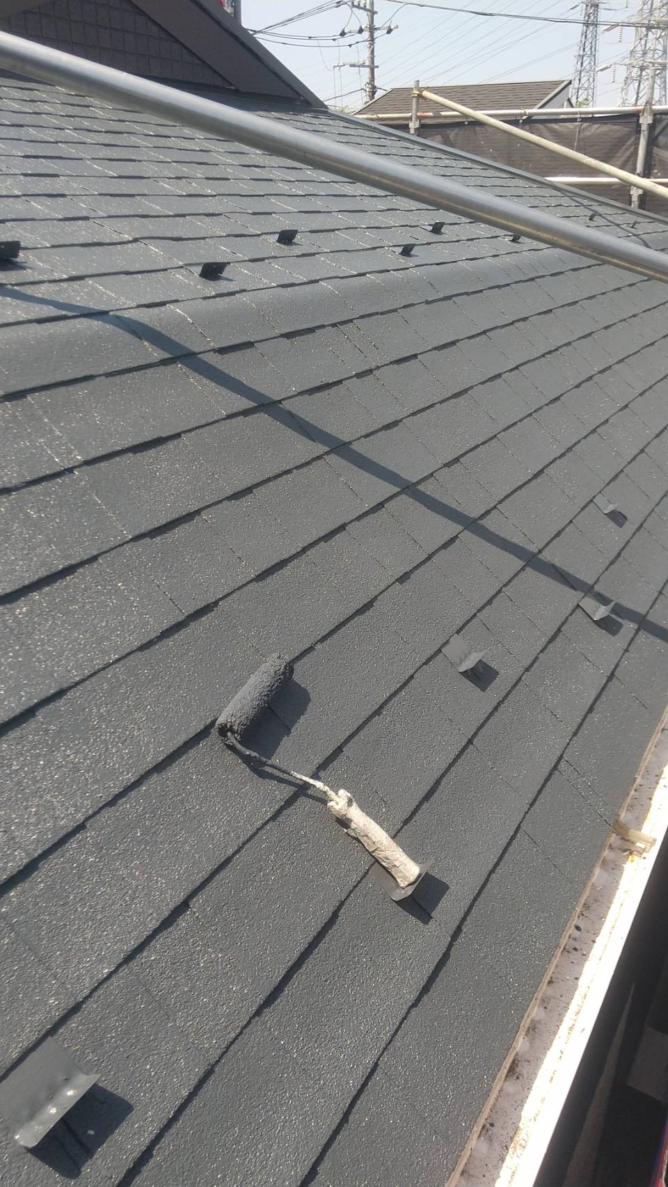 本日は、東京都足立区K様邸にて、屋根上塗り作業を行いました!