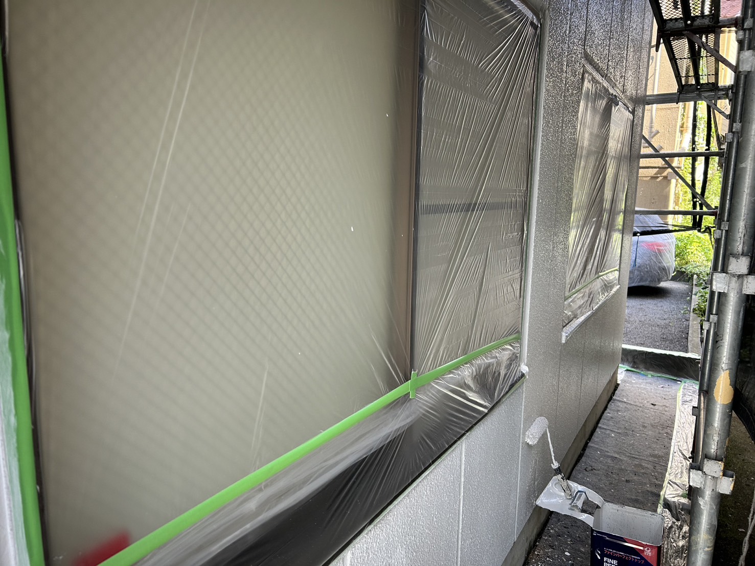 本日は、東京都足立区O様邸にて、外壁中塗り作業を行いました!