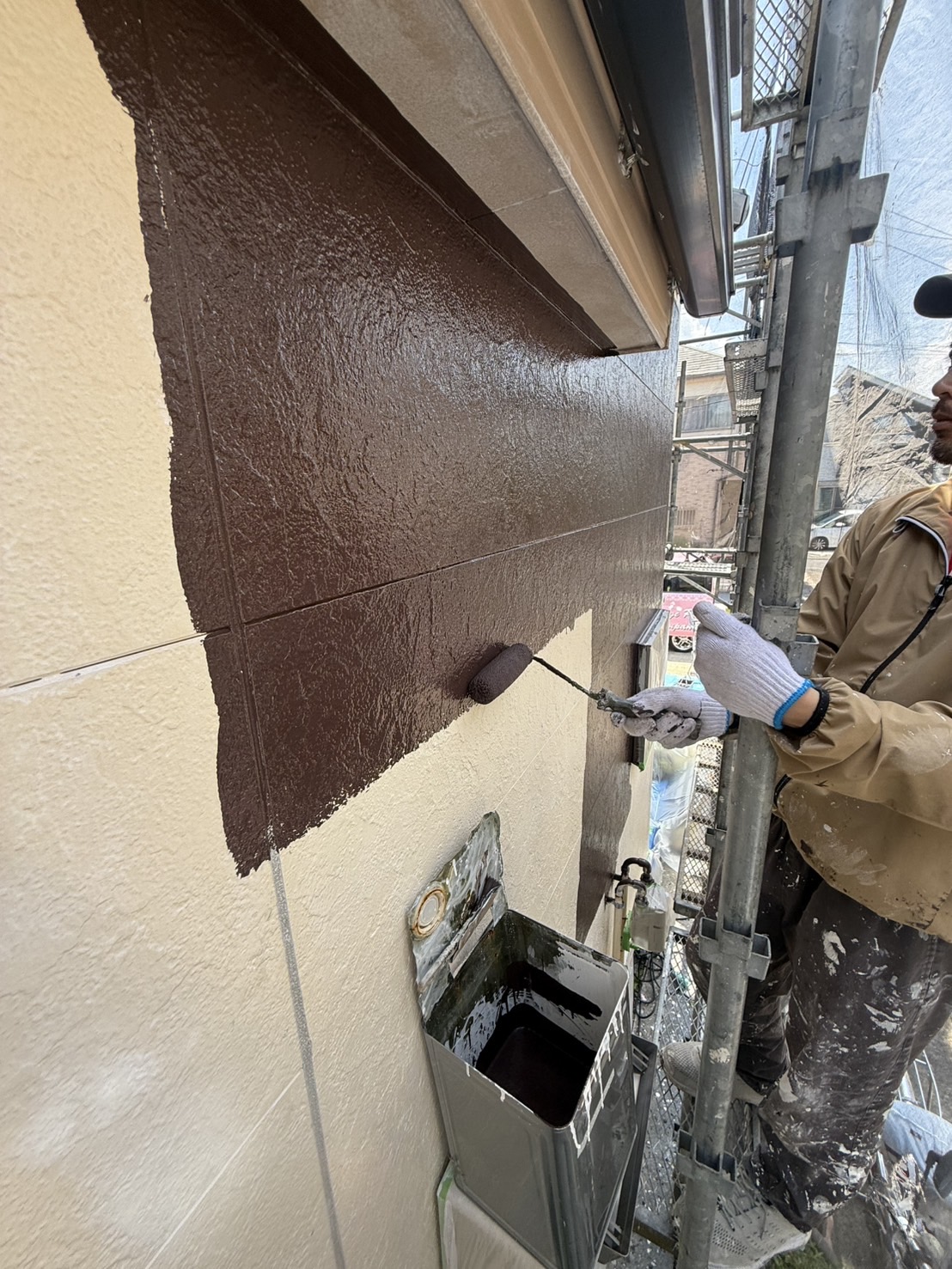 本日は、東京都足立区K様邸にて、中塗り作業を行いました!