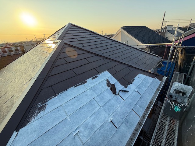 本日は、清瀬市T様邸屋根中塗り作業行いました!